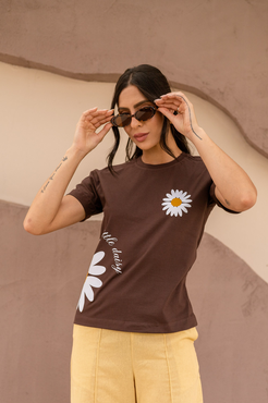 Tshirt Bordada Florzinhas Vermelhas Mangas